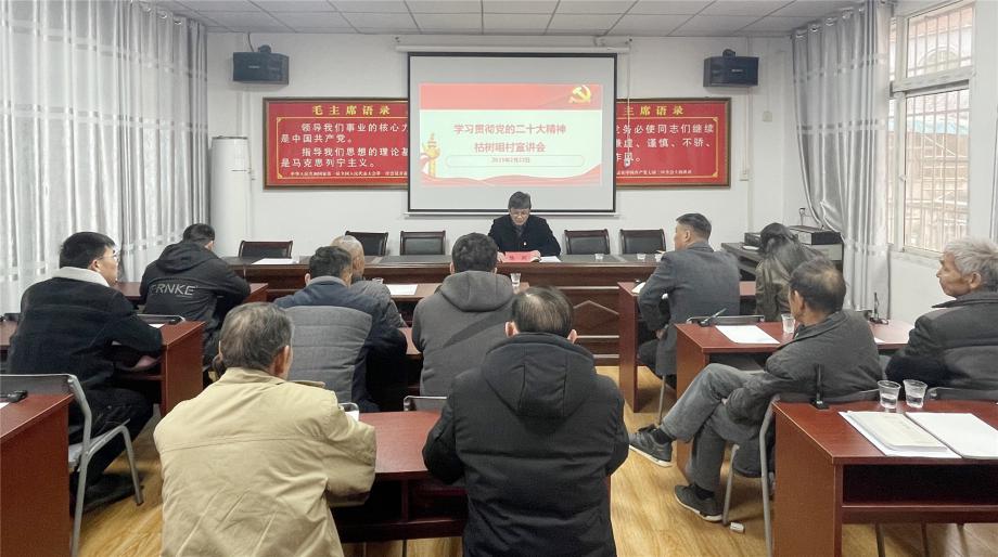 2月22日,磁湖高新公司黨委委員、總會(huì )計師陸剛赴汪仁鎮枯樹(shù)咀村宣講黨的二十大精神,鼓勵該村黨員干部進(jìn)一步提升鄉村治理能力和水平,奮力譜寫(xiě)鄉村治理新篇章。