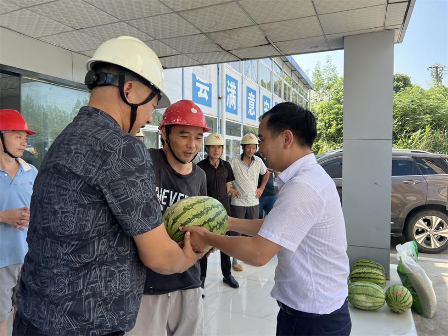 烈日炎炎,高溫持續。為扎實(shí)做好高溫期間勞動(dòng)保護和防暑降溫工作,8月16日,公司黨委書(shū)記、董事長(cháng)王紹軍帶隊,深入項目工地開(kāi)展“送清涼”慰問(wèn)活動(dòng)。