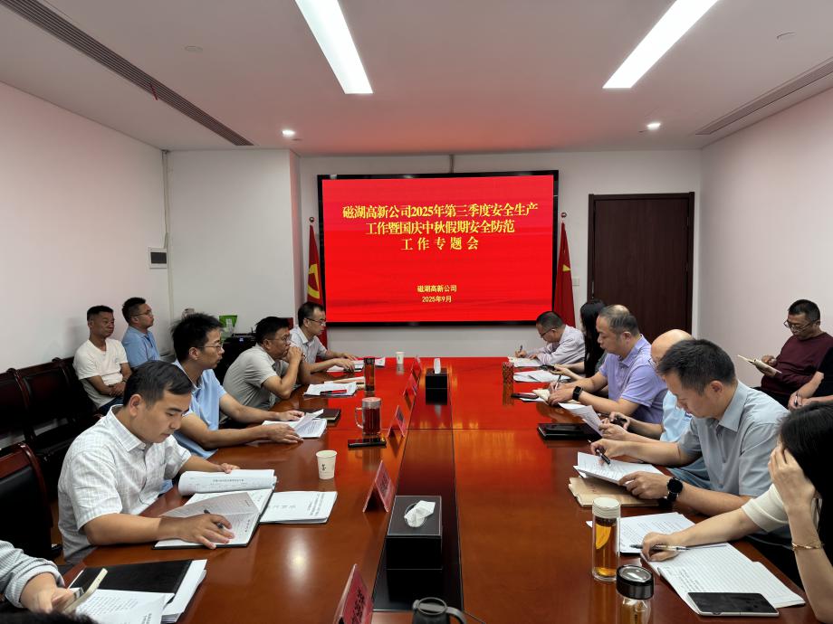 9月22日下午,磁湖高新公司召開(kāi)2025年第三季度安全生產(chǎn)工作暨國慶中秋假期安全防范工作專(zhuān)題會(huì )。公司黨委班子成員、各部室及子公司中層以上人員、項目安全管理員參加會(huì )議。