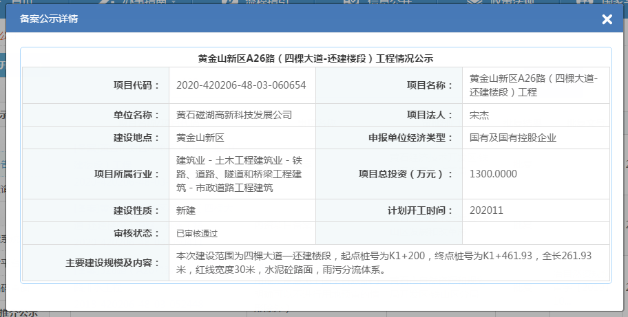 黃金山新區A26路(四棵大道-還建樓段)工程情況公示