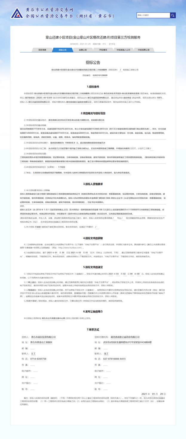 章山還建小區項目第三方檢測服務(wù)招標公告