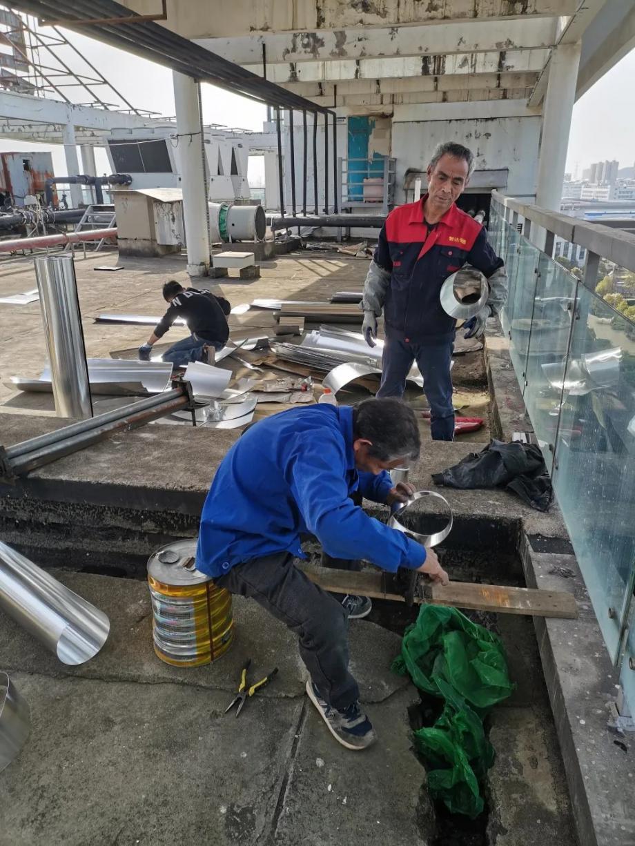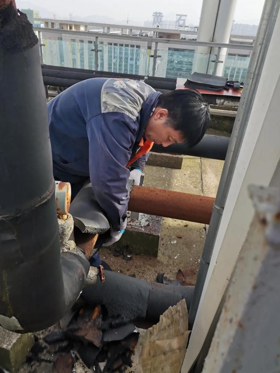 為此,高新物業(yè)公司認真貫徹落實(shí)《綠色高效制冷行動(dòng)方案》,及時(shí)維修、更換該樓中央空調循環(huán)水管保溫棉外露面,并加裝鋁制金屬保護殼,在節約能耗的同時(shí),還能有效避免凝水滲漏。