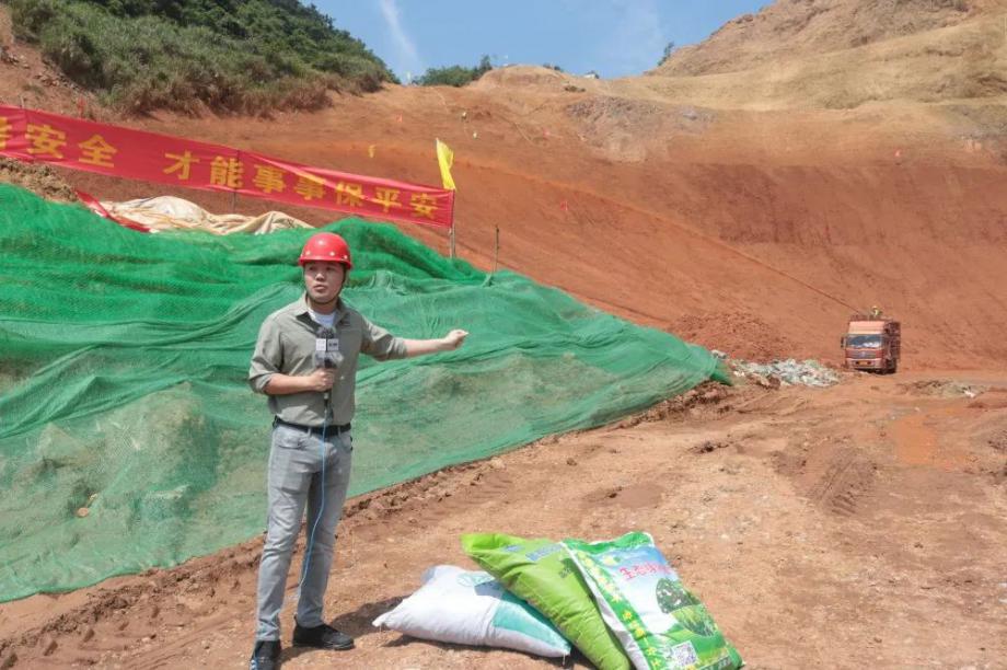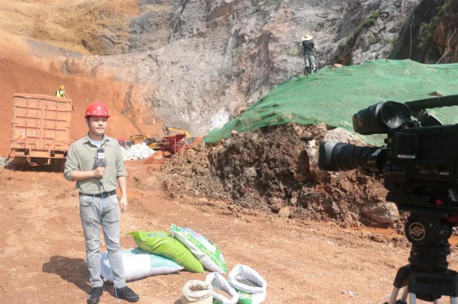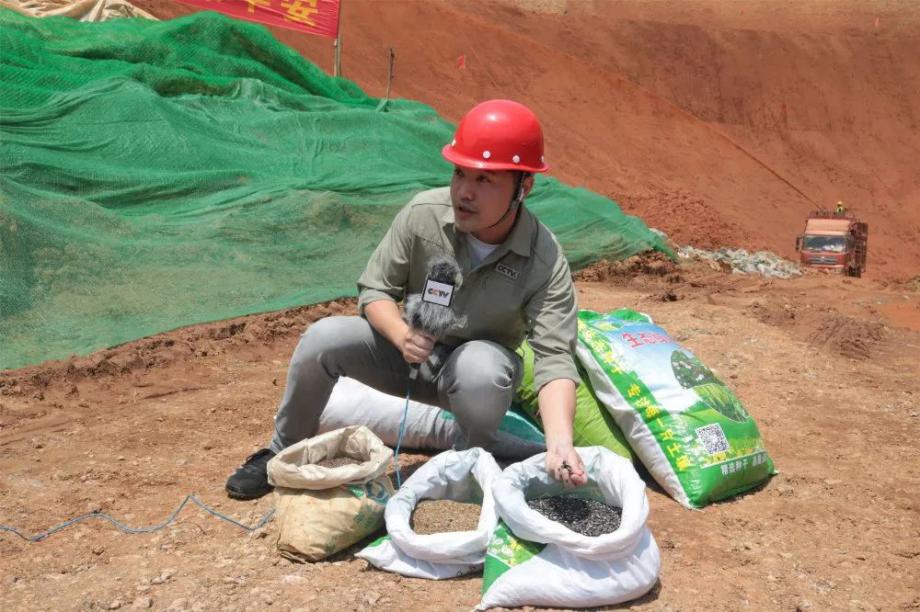 本次報道中,央視記者按照開(kāi)山塘口修復的施工時(shí)間線(xiàn),運用了“灰、淡黃、棕褐、綠”這四種顏色,向觀(guān)眾形象、通俗地展現了開(kāi)山塘口修復治理的全過(guò)程?;疑锹懵兜?、“受傷”的山,淡黃色是干草打碎后形成的草纖維,棕褐色是混入不同種子后的泥漿,綠色則是希望、是健康、是礦山修復的終極目標。