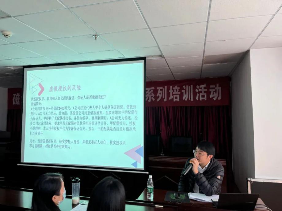 11月13日,磁湖公司(經(jīng)開(kāi)投公司)職工工作能力提升培訓班“第一課”開(kāi)講。本期課程主要圍繞經(jīng)濟活動(dòng)中的各大要素,通過(guò)普及合同相關(guān)法律知識,進(jìn)一步增強風(fēng)險防范意識,幫助職工在參與企業(yè)經(jīng)營(yíng)活動(dòng)時(shí)更好地“避坑排雷”。