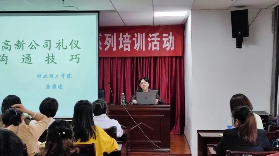 公司特邀湖北理工學(xué)院副教授唐雁凌老師擔任主講,唐教授通過(guò)圖文演示、現場(chǎng)示范等方式,圍繞著(zhù)裝、姿勢、握手、會(huì )務(wù)、溝通等方面,對職場(chǎng)商務(wù)禮儀進(jìn)行了系統、全面地講解。